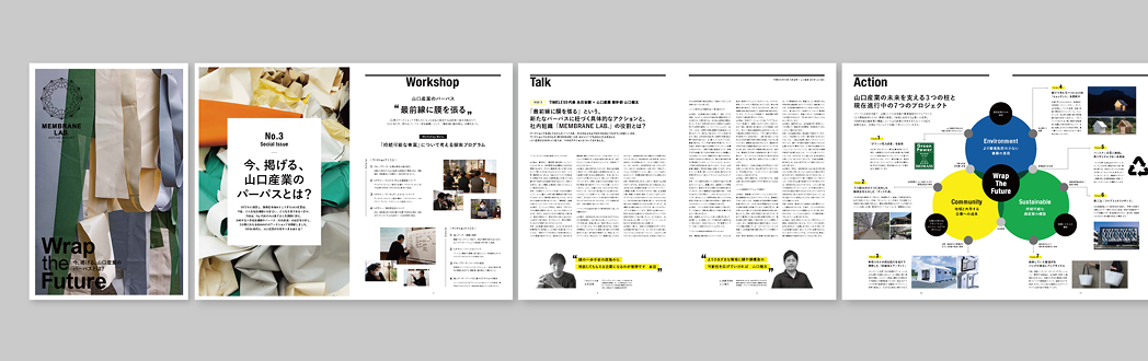 1年に1回のペースで社会課題や産業分野を設定し、外部クリエイターとの連携を通じてこれからの膜構造の可能性や価値創造へ取り組んでいます。その内容を、タブロイドとして外部へ発信しています。